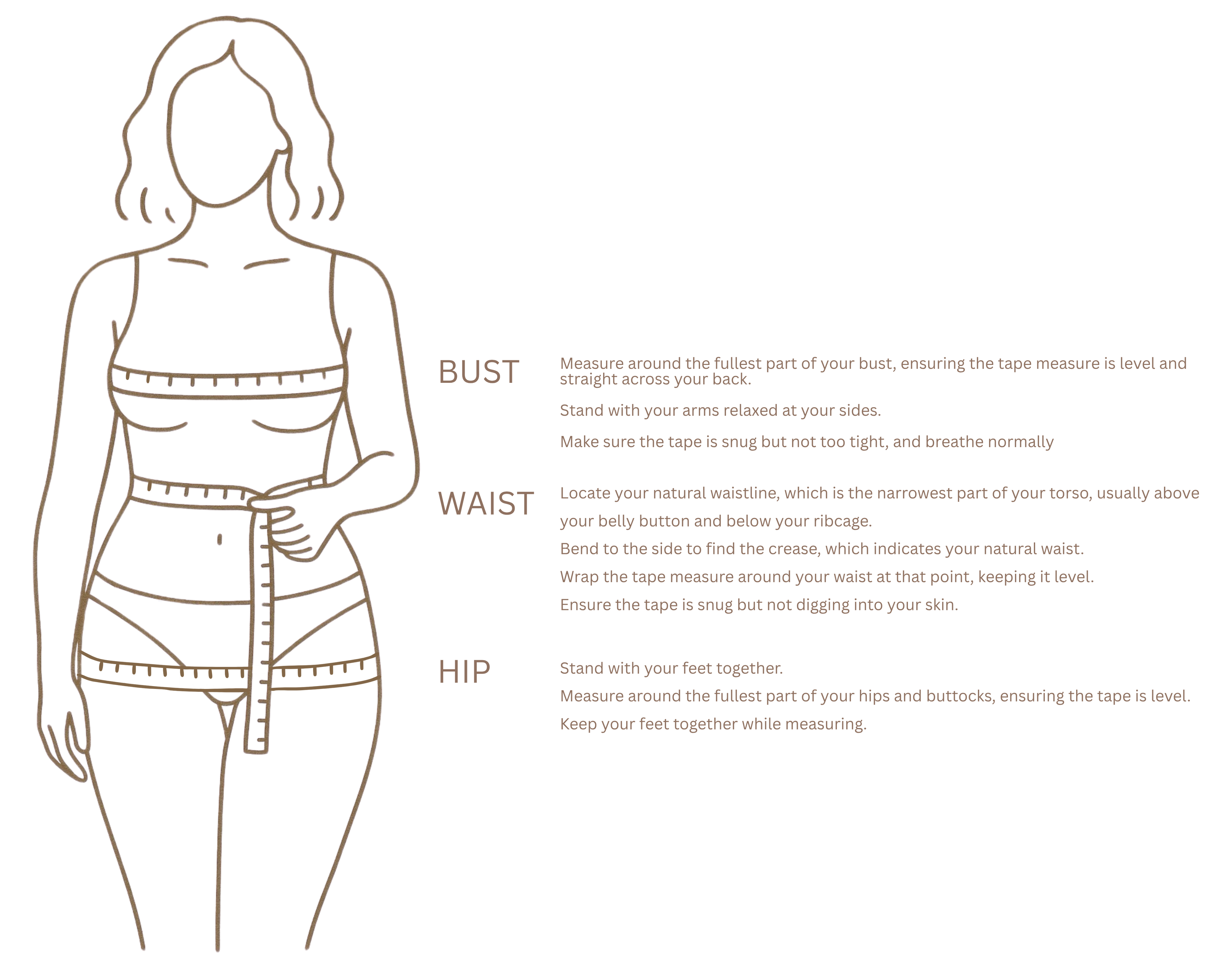 Garment length measurements - We measure the length of all our garments from the highest point (shoulder) to hemline. You can check where garment length will be on you by holding tape measure at your collarbone and following tape until you reach measurement matching size chart. Another option is to measure from highest point of garment to hemline of something you already have in your wardrobe.