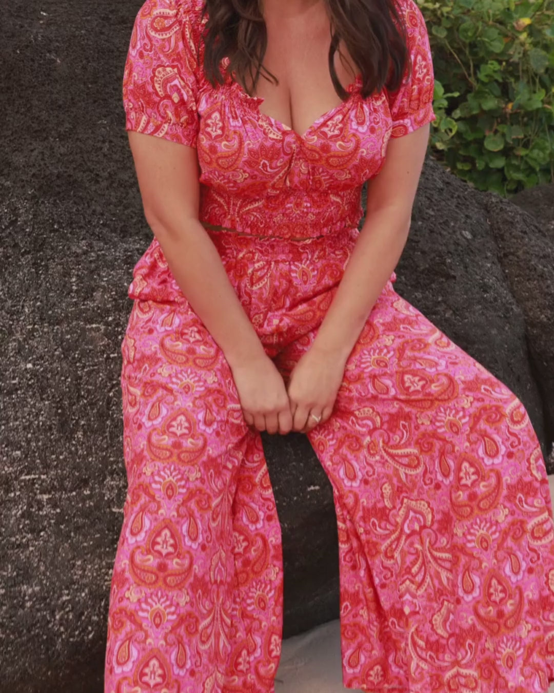 The perfect boho top to mix & match with one of our solid coloured bottoms or as a matching set with the skirt or pant in the same print.
