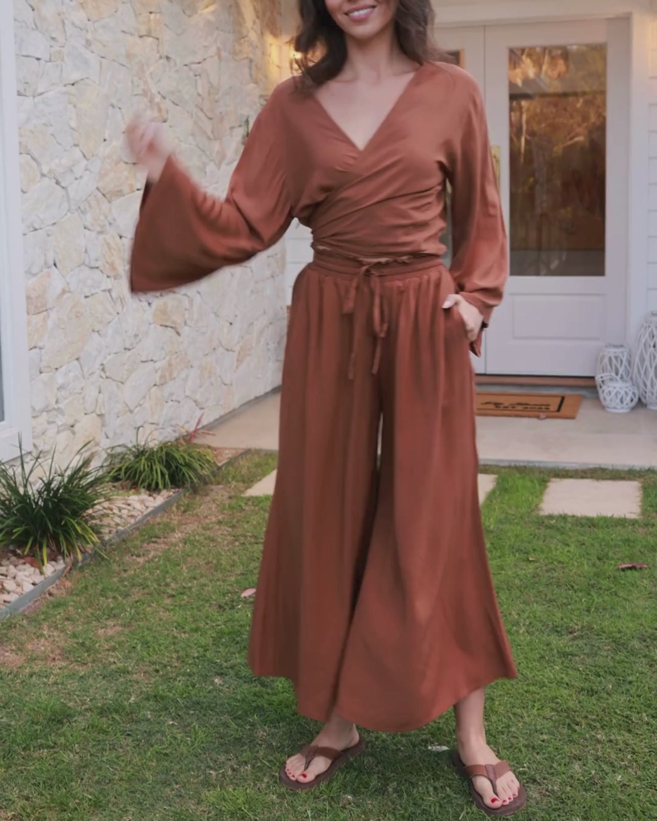 Introducing our best selling pant Billy! She has wide legs, pockets, super comfortable & she flows as you walk. She ticks all the boxes, dress her up or down (she loves to go out), this classic brown pant has a place in everyone's wardrobe.