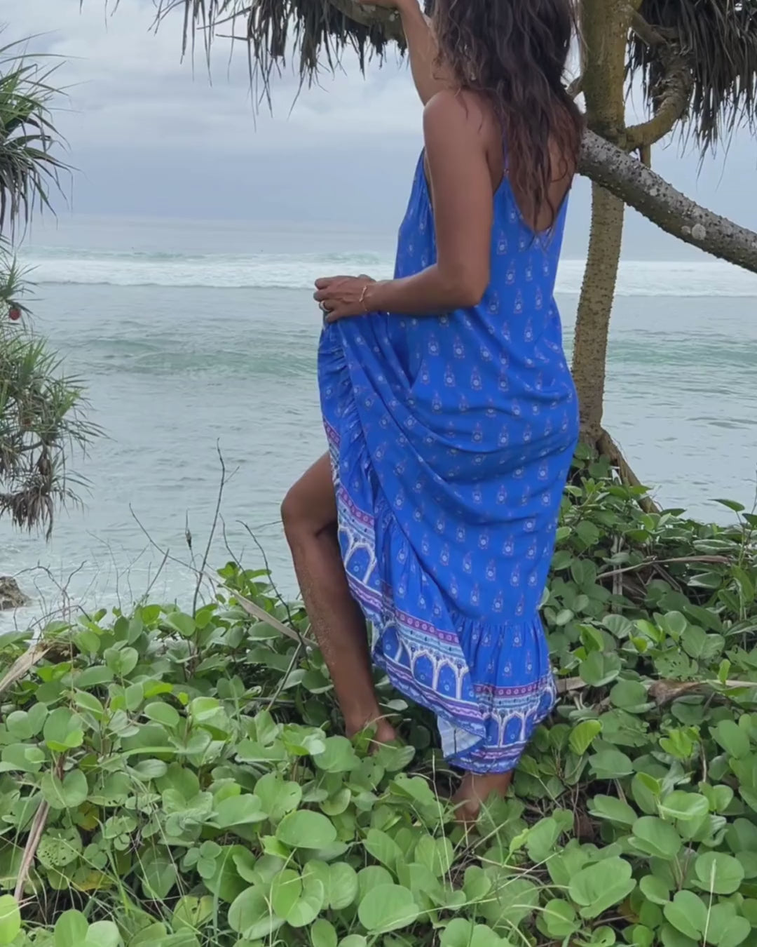 Coco is a flowy maxi dress perfect for summer with thin adjustable straps. We think she is stunning in the Casabella print, a vibrant blue border print that looks striking on.