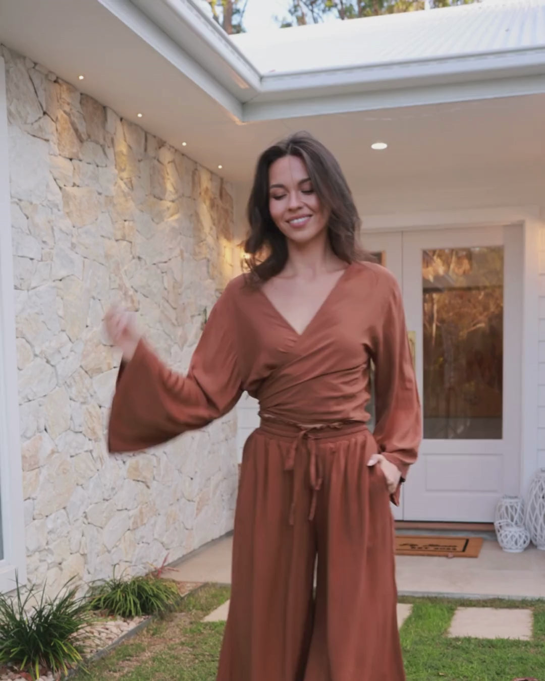 The versatile Fae Wrap Top is a perfect piece to include in your wardrobe. Wear it as a matching set or style it with jeans for a playful boho vibe.