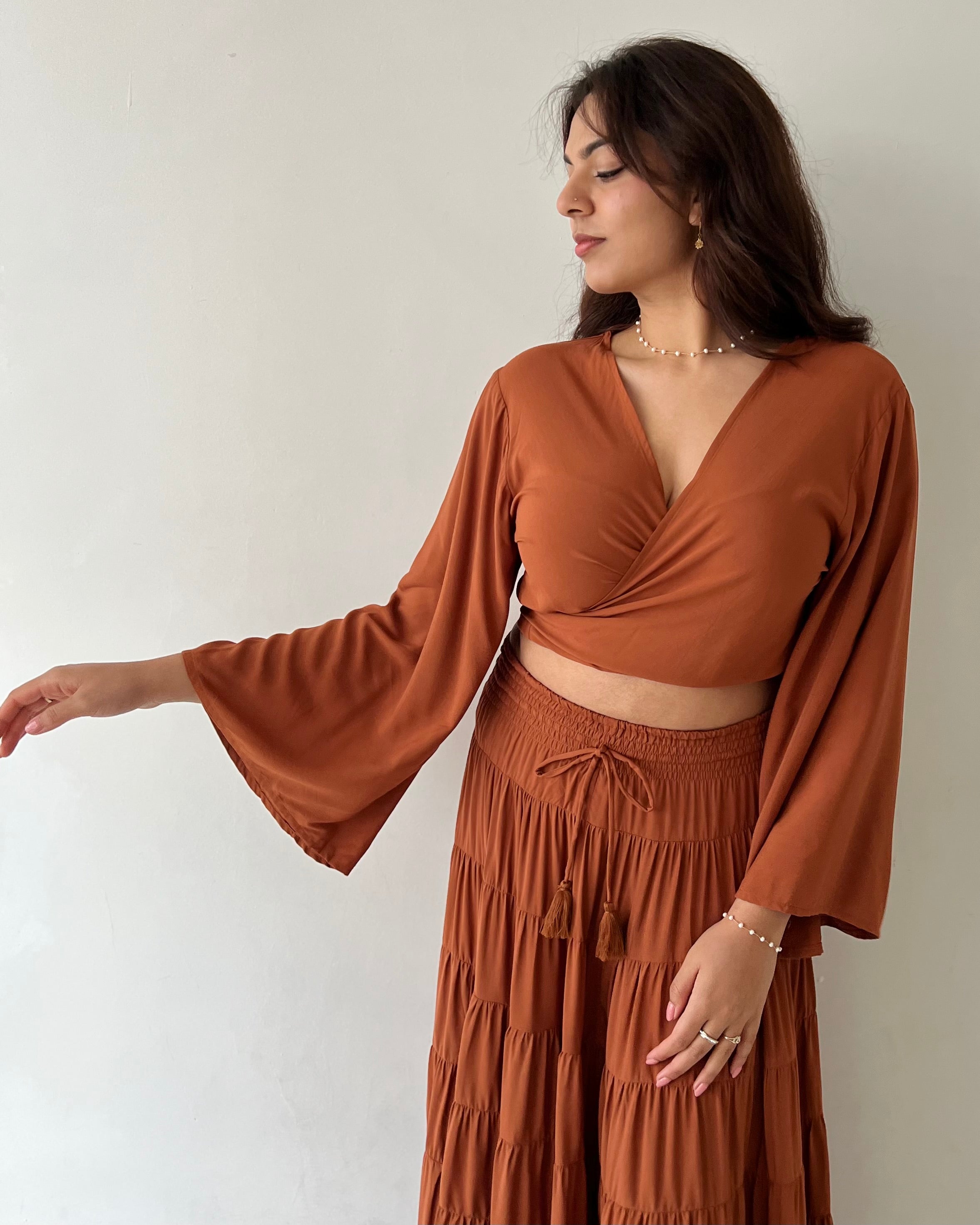 The versatile Fae Wrap Top is a perfect piece to include in your wardrobe. You can wear this beauty many ways so it is adaptable to many body shapes. Wear it as a matching set or style it with one of our bottoms to make the perfect boho set.